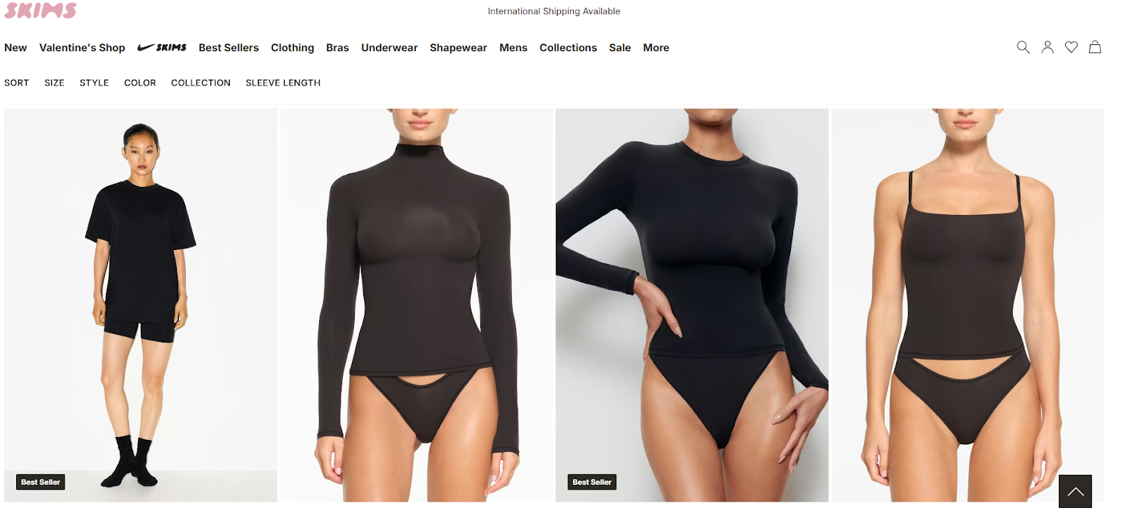 For customers who already trust these legacy performance brands, the transfer of trust is almost automatic. It removes the hesitation often associated with trying a new premium apparel brand and distances Skims from fast-fashion perceptions. Without saying it explicitly, the website communicates that Skims belongs in a serious, performance-led ecosystem.