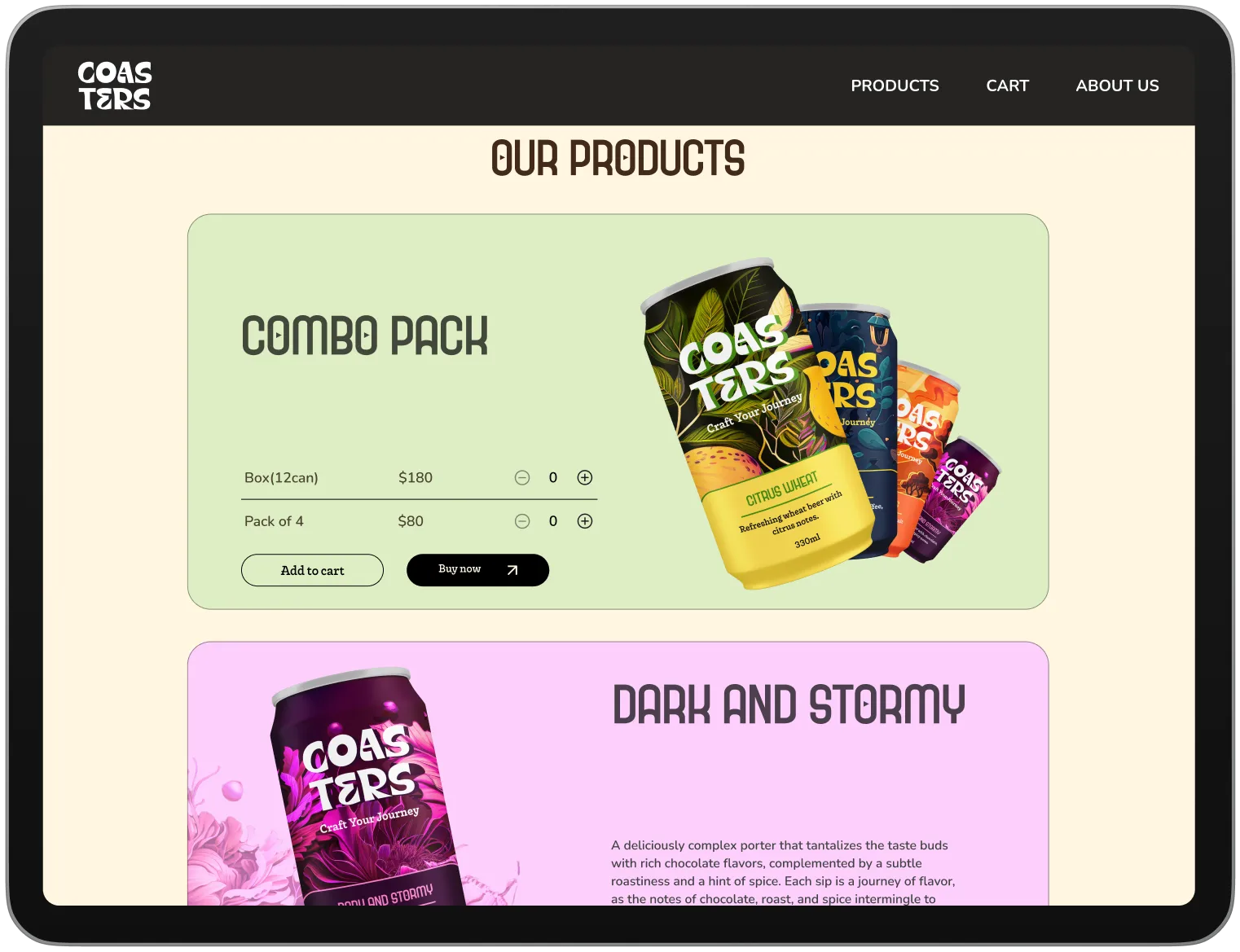 The final website delivered to Coasters brought together visual character and usability in a cohesive experience. With a modern and inviting interface supported by smooth navigation, the website captured the brand’s spirit while delivering a strong digital presence.