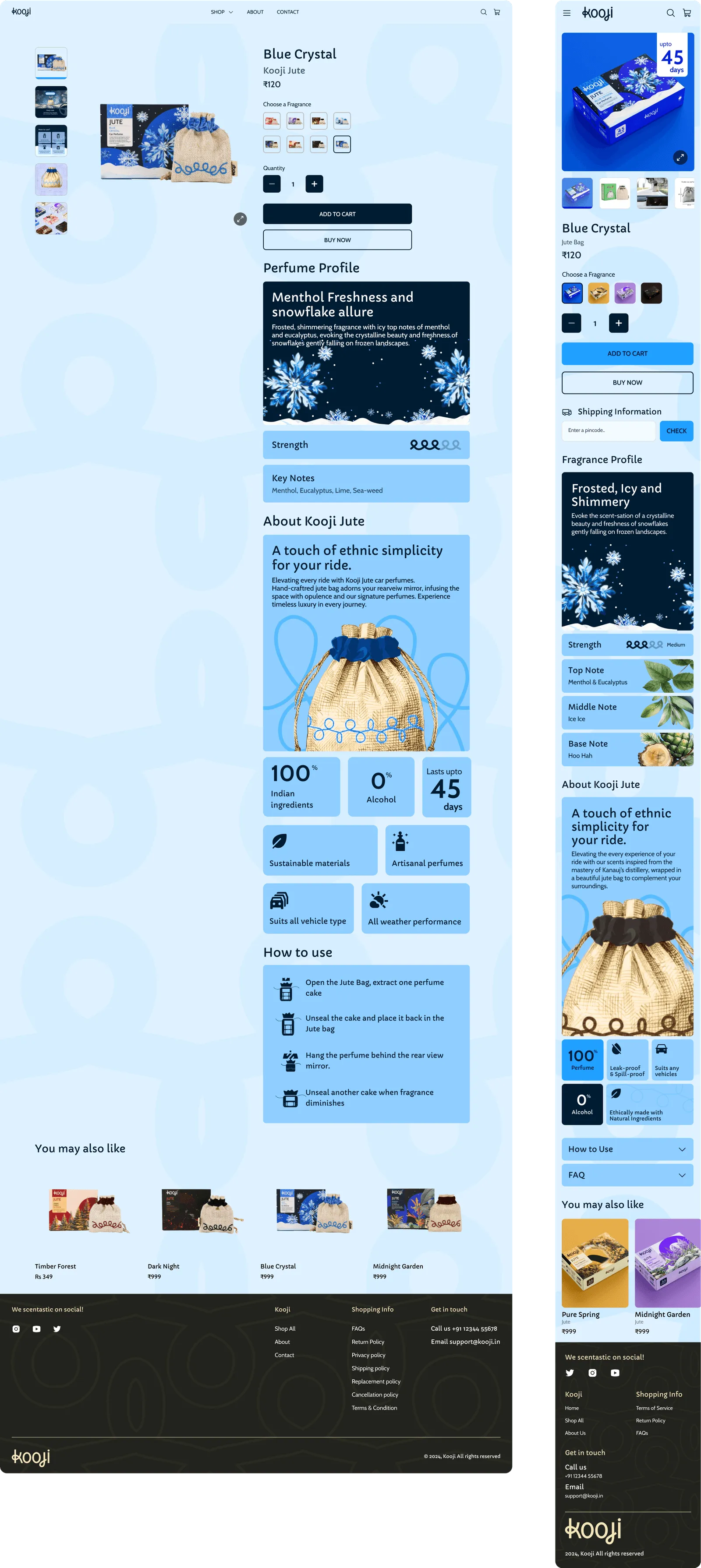Suplex designed a structured information architecture that supported intuitive navigation across the website. Essential pages such as Product and About Us were organised to create a logical flow, allowing users to explore the brand and its offerings with ease.The structure reflected Kooji’s premium and sustainability-led approach without overcomplicating the browsing experience.