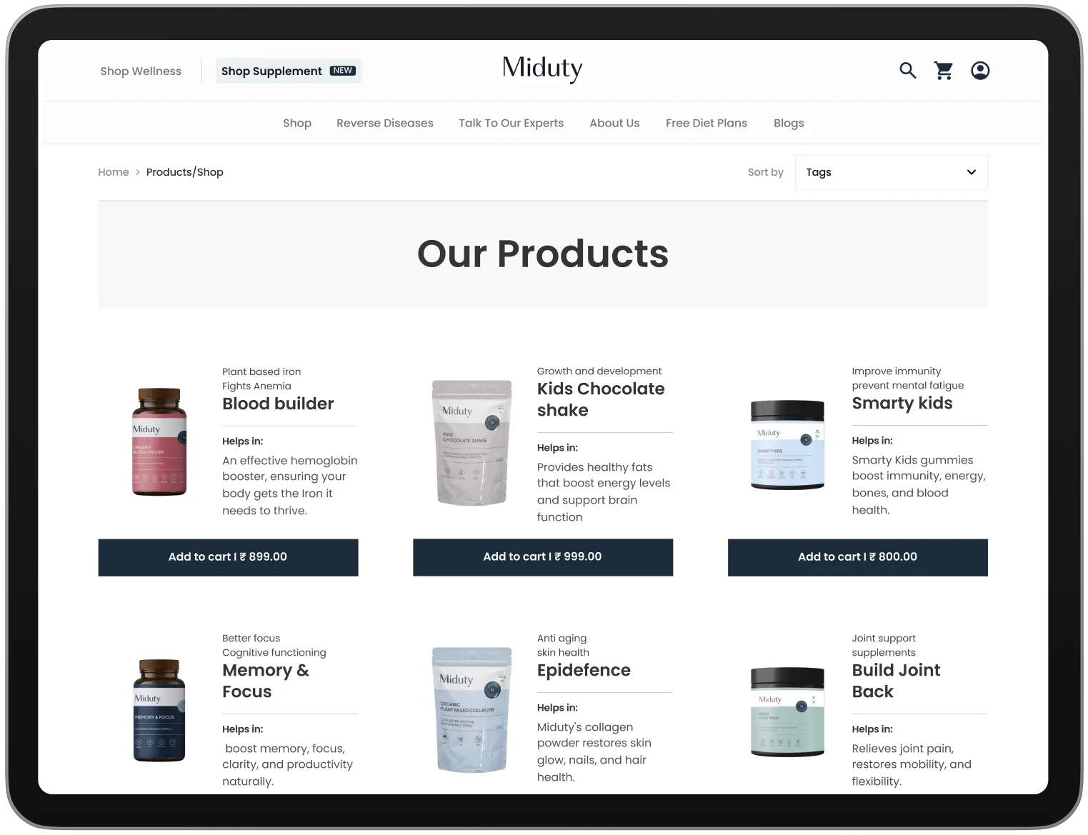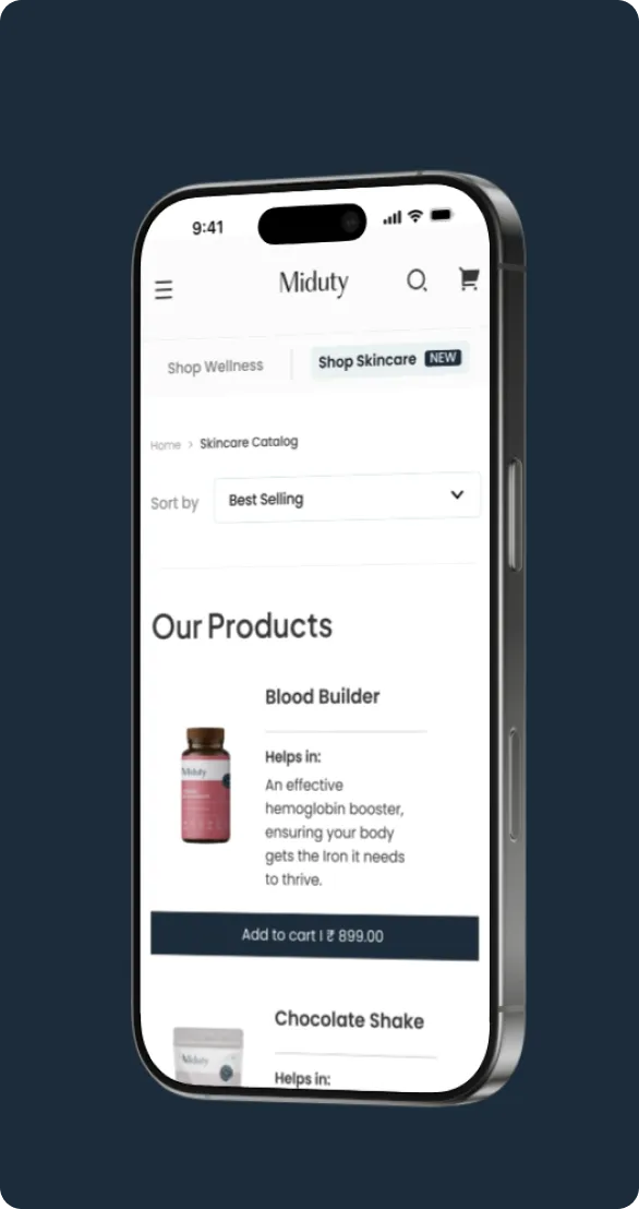 Suplex designed a clear and structured information architecture to support ease of navigation and a frictionless browsing experience. Key pages such as the homepage, product listing, product detail pages, about us, and terms and conditions were thoughtfully organised to ensure logical flow and accessibility. This clarity in structure enabled users to find essential information effortlessly, reinforcing Miduty’s aim of delivering a simple, empowering, and user-friendly digital journey.