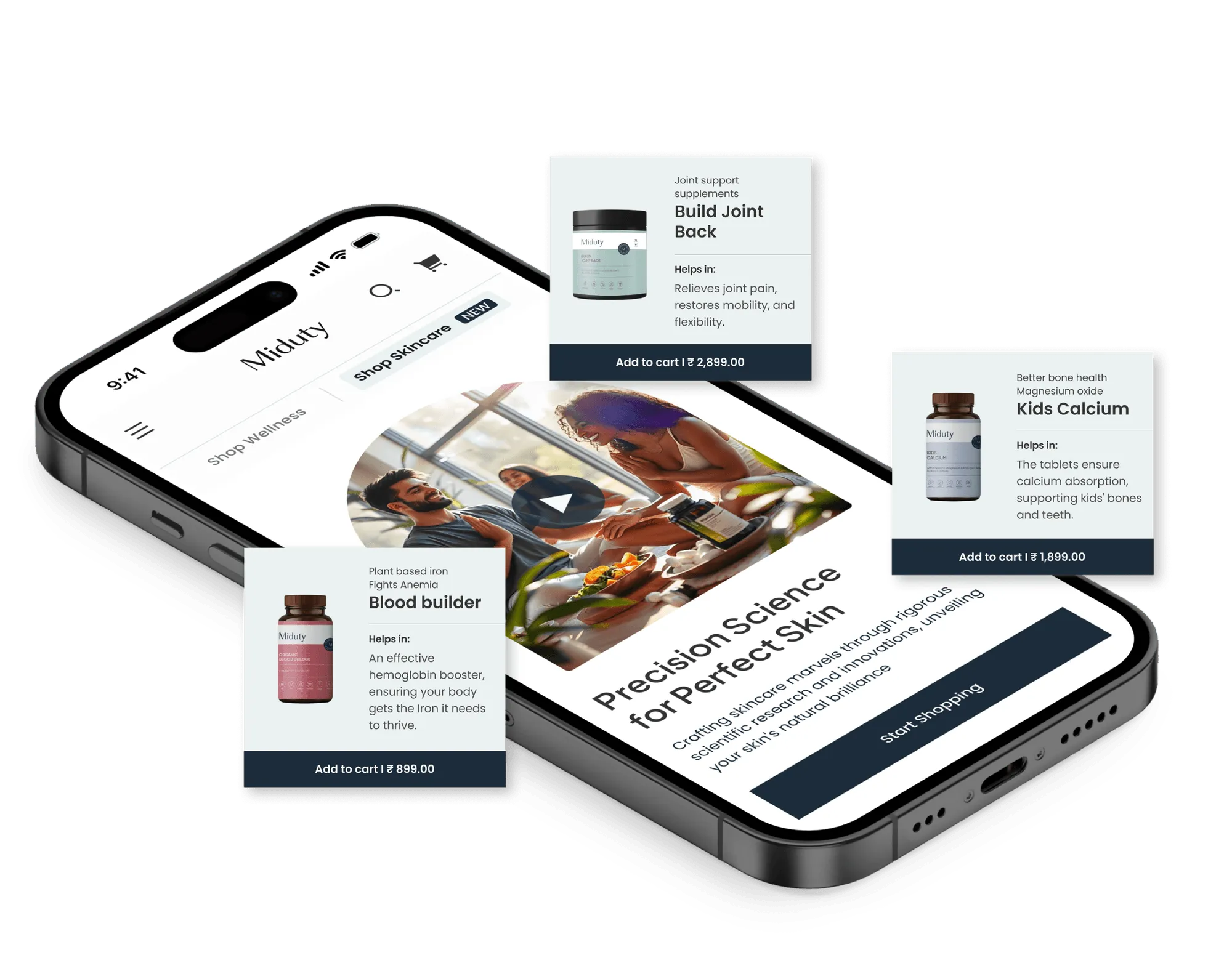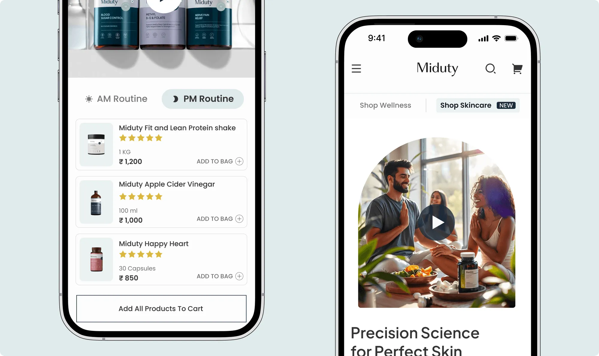 The UX process began with the development of detailed user personas to better understand Miduty’s core audience and their challenges. These included concerns around declining confidence, unmet skincare promises, and the difficulty of finding products they could genuinely trust. By recognising their need for reliable solutions that fit naturally into busy lifestyles, the experience was shaped to feel intuitive, reassuring, and authentic. This user-first approach helped build trust while reinforcing Miduty’s purpose-led positioning.