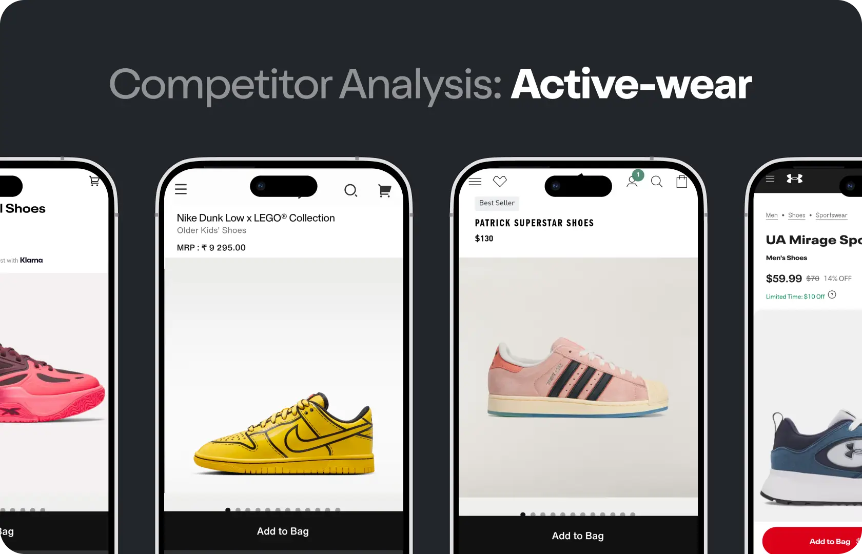 - We break down each competitor’s website into structure, navigation logic, content hierarchy, product discovery, and checkout flow
